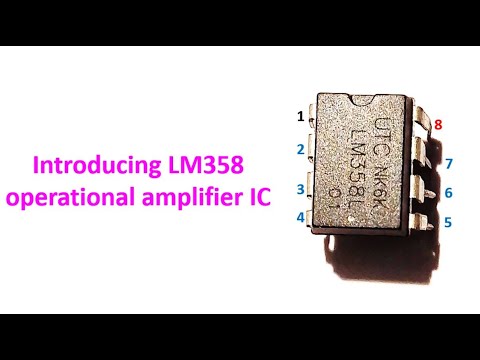 An operational amplifier gets its name from the original use of opamps in analog computers for mathematical operations. Op amps typically have two differential inputs and a single output. Non-inverting input is called V+ and inverting input is designated V-. LM358 is a low power dual operational amplifier integrated circuit. Power supply voltage can range from +3 to +30 Volts and input voltage can range from -0.3 Volts to supply voltage.